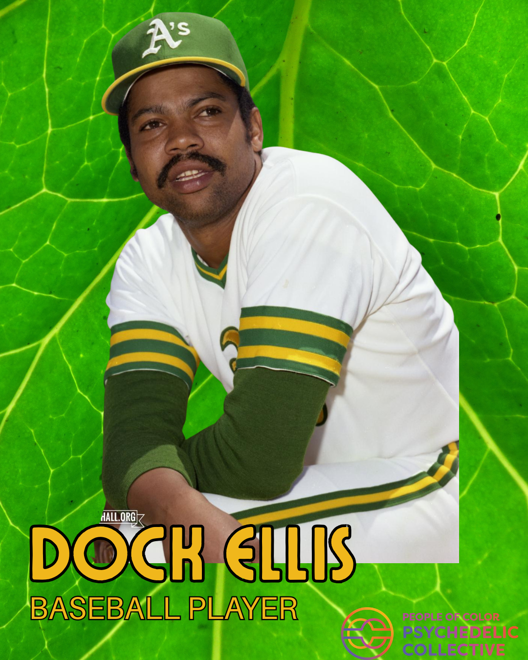 Dock Ellis was born in 1945 in Los Angeles. He was a professional baseball player from 1968 through 1979, most notably as a pitcher for the Pittsburgh Pirates. On June 12, 1970, Dock Ellis threw a no-hitter against the San Diego Padres while under the influence of LSD. The story begins with a chaotic misunderstanding. Dock had been taking LSD throughout what he believed was an off-day that morning. At roughly 2:00 PM, he accidentally found out that he was scheduled to pitch in San Diego that same night. Ellis quickly flew to San Diego, arriving around 3:00 PM for the 6:05 PM game. “I started having a crazy idea in the fourth inning that Richard Nixon was the home plate umpire,” he recounted years later to the New York Times. “And once I thought I was pitching a baseball to Jimi Hendrix, who to me was holding a guitar and swinging it over the plate. Ellis was diagnosed with cirrhosis in 2007 and died in Los Angeles on December 19, 2008.