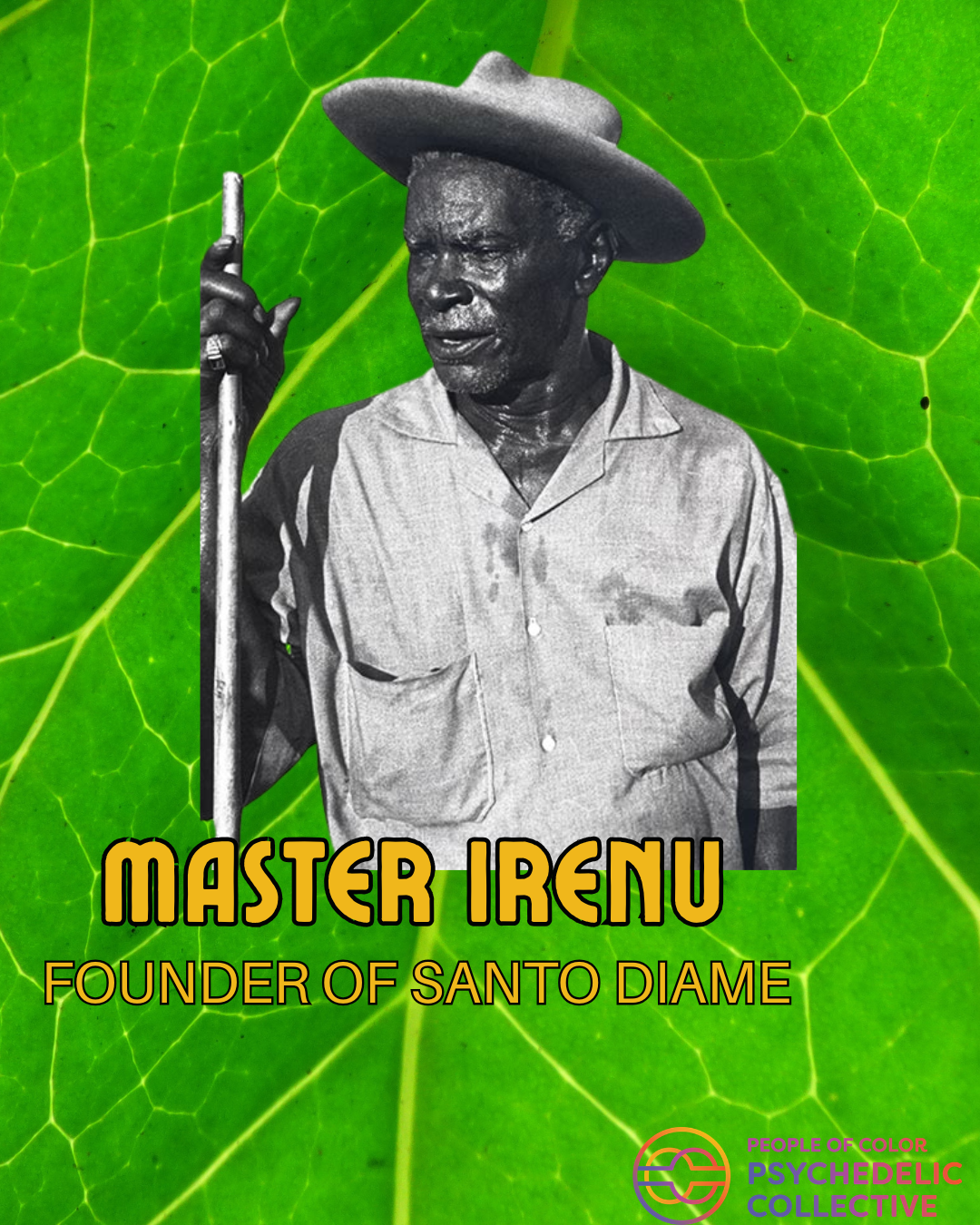 Mestre Irineu was born in the Brazilian state of Maranhão in 1892. Slavery was abolished in Brazil in 1888, so Irineu was born to recently freed, formerly enslaved people. He moved to the state of Acre, in the heart of the Amazon rainforest, to work in rubber extraction, served in the military, and eventually landed a job as a surveyor for the Brazilian federal government. In the Amazon, Mestre Irineu connected with Indigenous communities and learned about the spiritual benefits of ayahuasca. By 1930, he founded Santo Daime, a religion that connects ayahuasca, spiritual guardians, and self-awareness. Mestre Irineu and his peers suffered persecution because most practitioners of his teachings were Afro-Brazilians. Santo Daime rituals include not only partaking of ayahuasca medicine, but chanting songs honoring Christian, Indigenous, and Afro-Brazilian gods, and connecting with each other during the ceremony. Today, the legacy of Mestre Irineu has been widely celebrated by communities that use ayahuasca for healing, inner-connection, and spiritual awakening. He passed away in 1971.